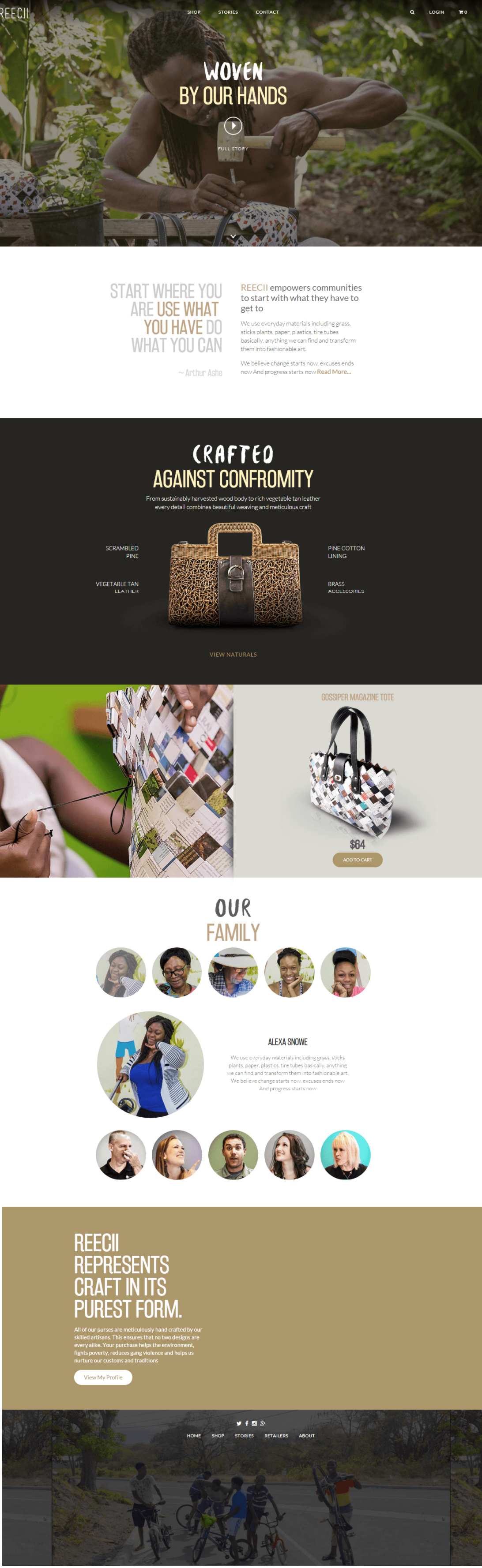 Reecii makes fashionable bags from everyday materials by hand. This craft is truly amazing. That's why they deserve a website that fits them well. In designing their website, we opted to make it clean and natural. With the use of neutral colors, blended with high quality images, infused with great typography, we've achieved a clean and stylish design, perfect for this earth-friendly and meticulous craft.